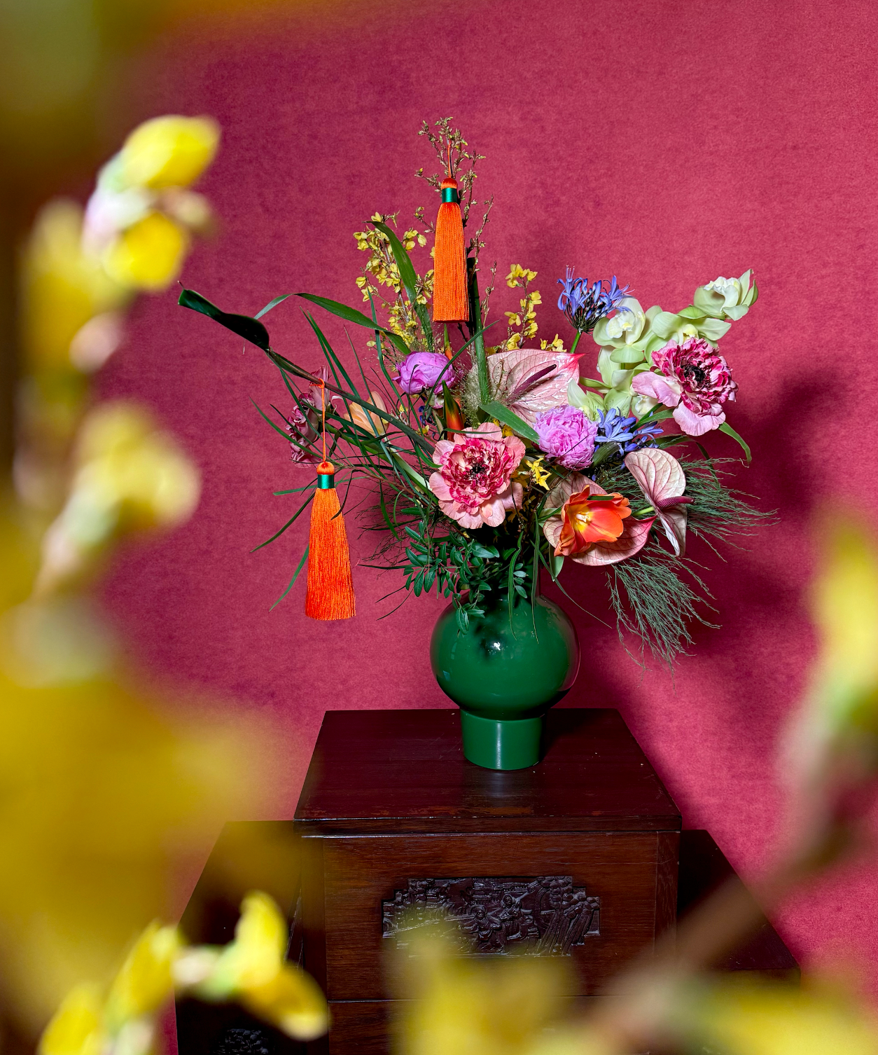 This floral arrangement reimagines the legend through eight hero flower species, each carefully selected to embody an auspicious quality for the Year of the Horse—prosperity, resilience, harmony, vitality, protection, renewal, grace, and success. United in one generous composition, the eight blooms work in concert to usher in a year of steady progress, noble achievements, and flourishing abundance.