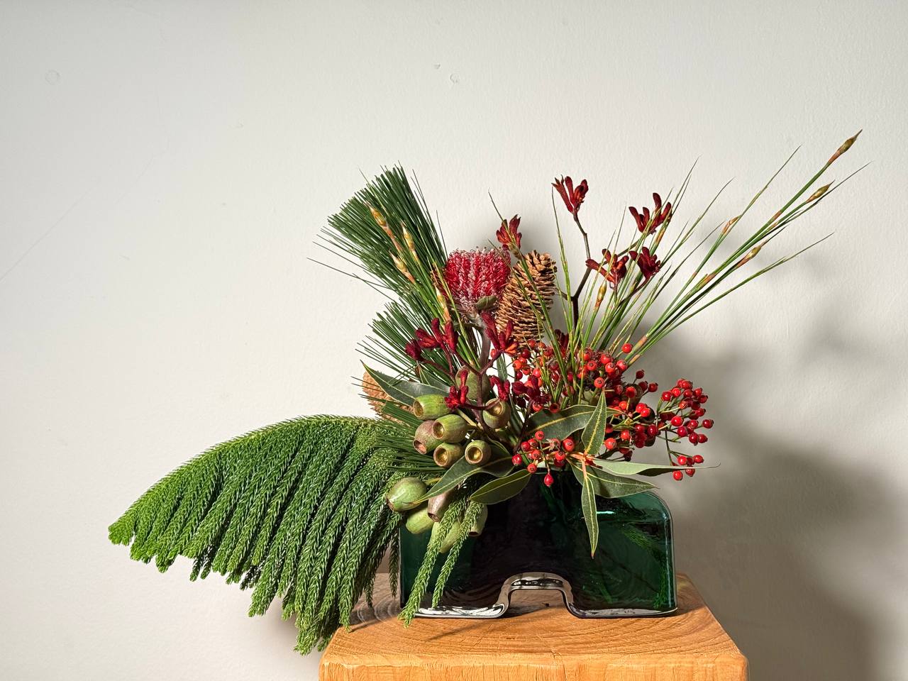 Everyone needs themselves stretchy pants for Christmas feasting -- This quirky statement piece will be the life of any festive party with its beautiful emerald glass vessel and Christmas botanicals.