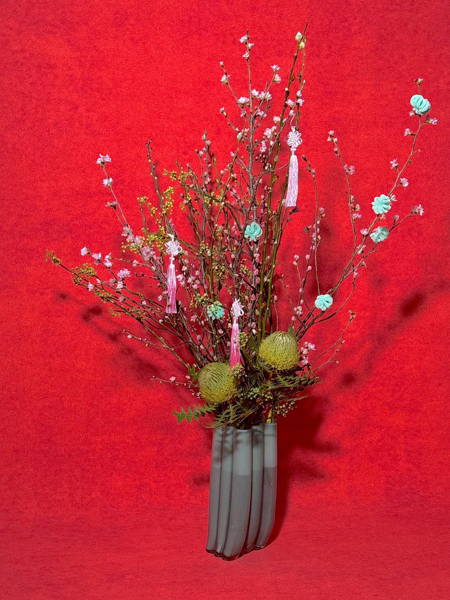 Photos are for illustrative purposes only and do not reflect selection of flowers or include surrounding props. Actual arrangement for fresh botanical add-on will be using seasonal flowers omakase style.